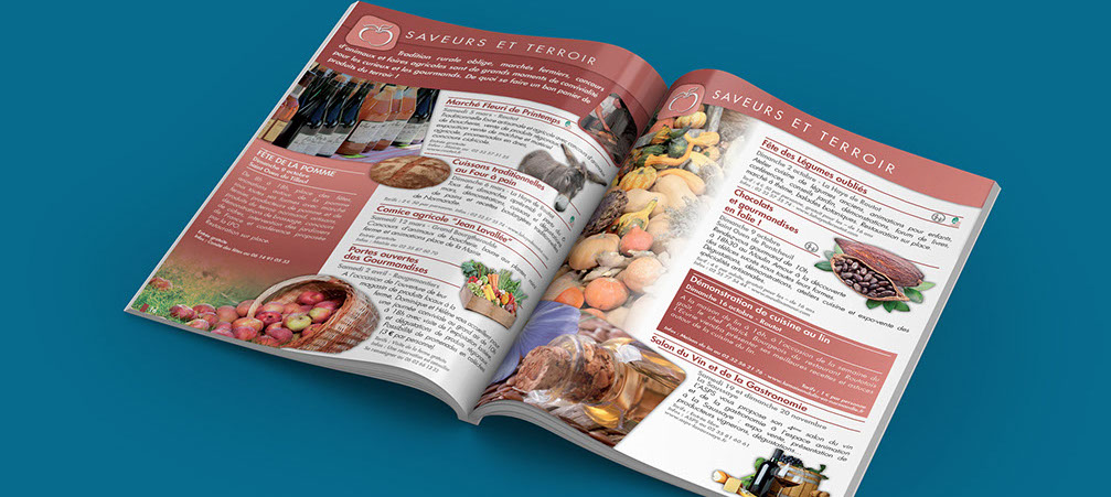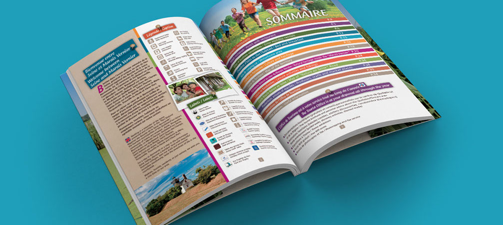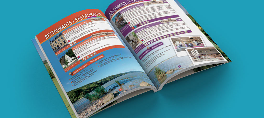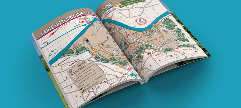 GUIDE TOURISTIQUE 36 PAGESOFFICE DE TOURISME DE BOURNEVILLE Création d'une identité visuelle avec cartes touristiques et illustrations personnalisées. Mise en pages d'après textes et photos. Découvrir le guide touristique de l'office de tourisme de Bourneville